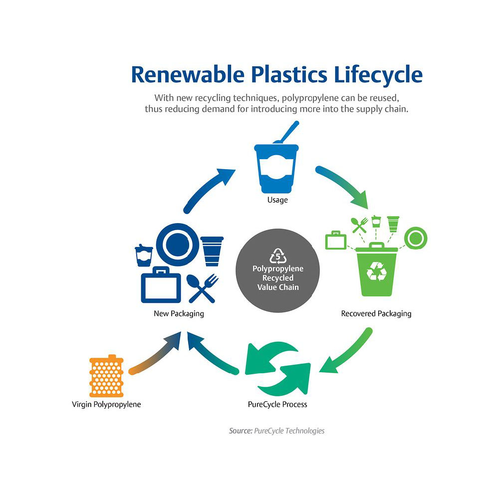 두 회사는 폴리프로필렌을 사용하는 새로운 방법을 도입하여 플라스틱 재활용의 가능성을 보여줍니다. PureCycle은 플라스틱을 순수한 형태에 가까운 폴리프로필렌으로 되돌려 플라스틱 경제에 새로운 형태로 다시 제공합니다. 한편, ReNew ELP는 혼합 플라스틱을 고급 화학 물질과 기름으로 만들어 새로운 용도로 새로운 분야에서 사용할 수 있도록 합니다.